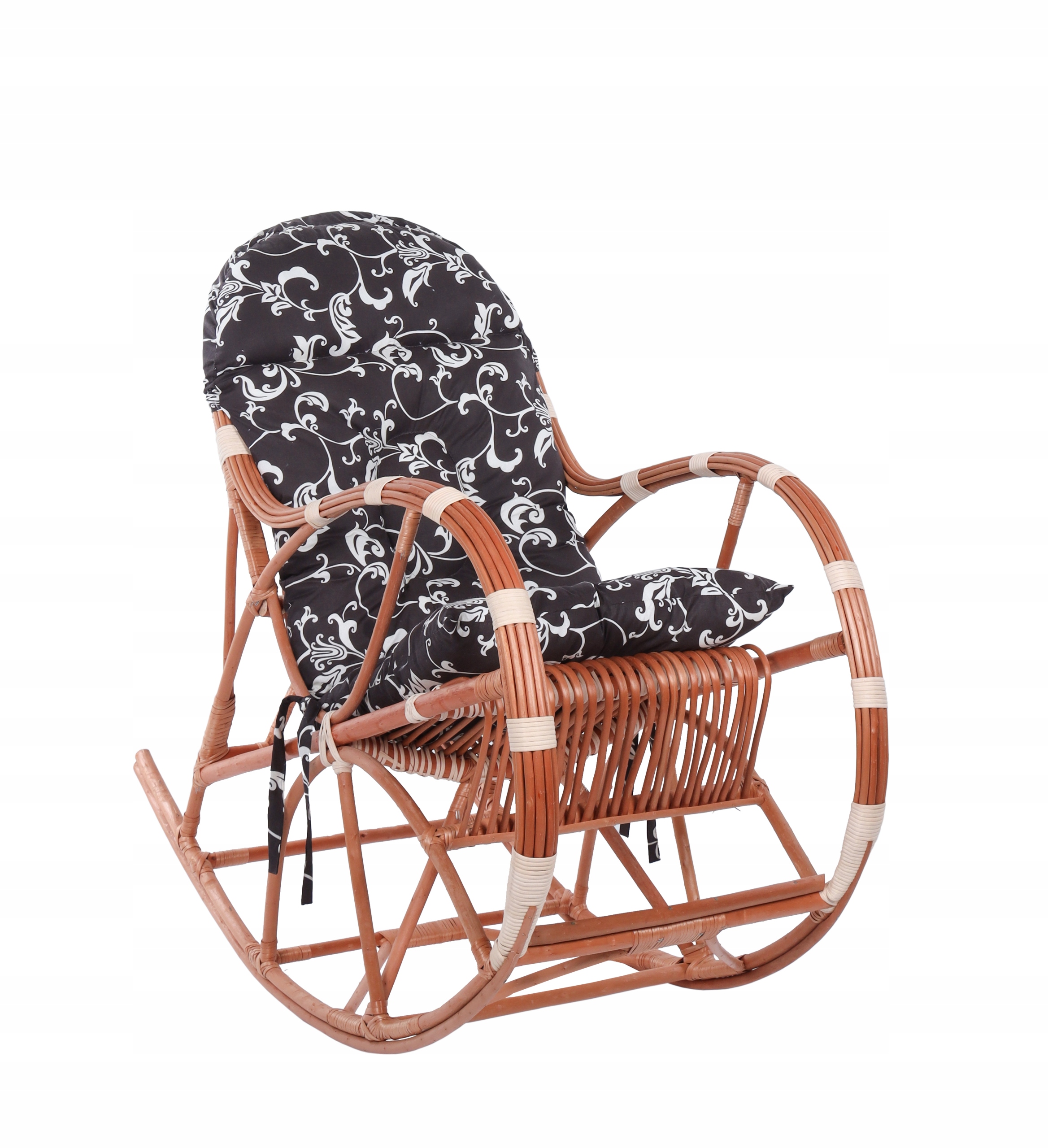 Tak prezentuje się fotel bez poduszki. To piękny tradycyjny wiklinowy fotel bujany. Poduszka dodaje fotelowi wygody dzięki czemu można relaksować się na nim długie godziny.